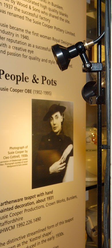 UFO mini crooks are an optional termination to a fibre tail which holds the fibre at an angle from vertical and is useful for lighting static arrangements of items.